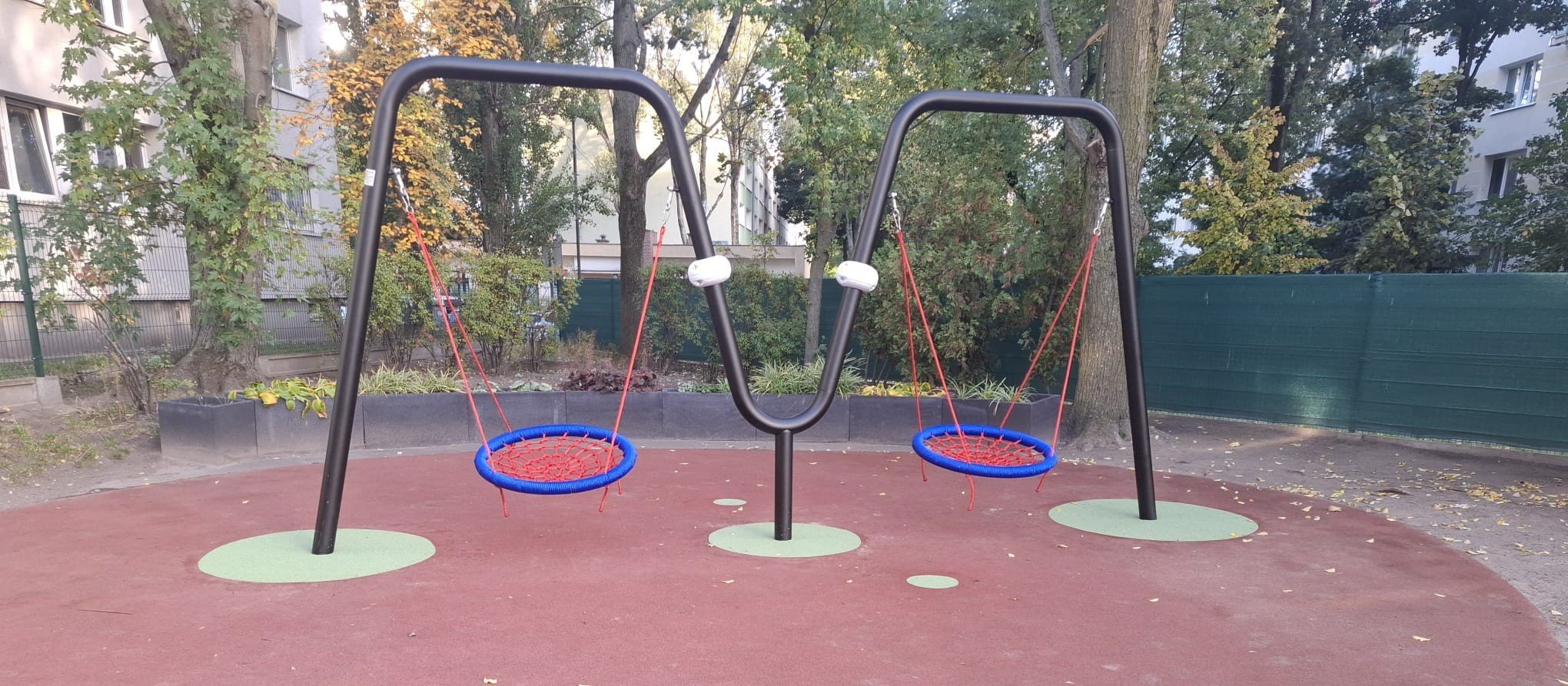 16.10.2025 Doskonała zabawa, huśtawka bocianie gniazdo, konik bujawka, a wszystko w Warszawie. Huśtawka podwójne bocianie gniazdo, bujawka konik, a wszystko na bezpiecznej nawierzchni wylewanej, częściowo osłoniętej żaglem.