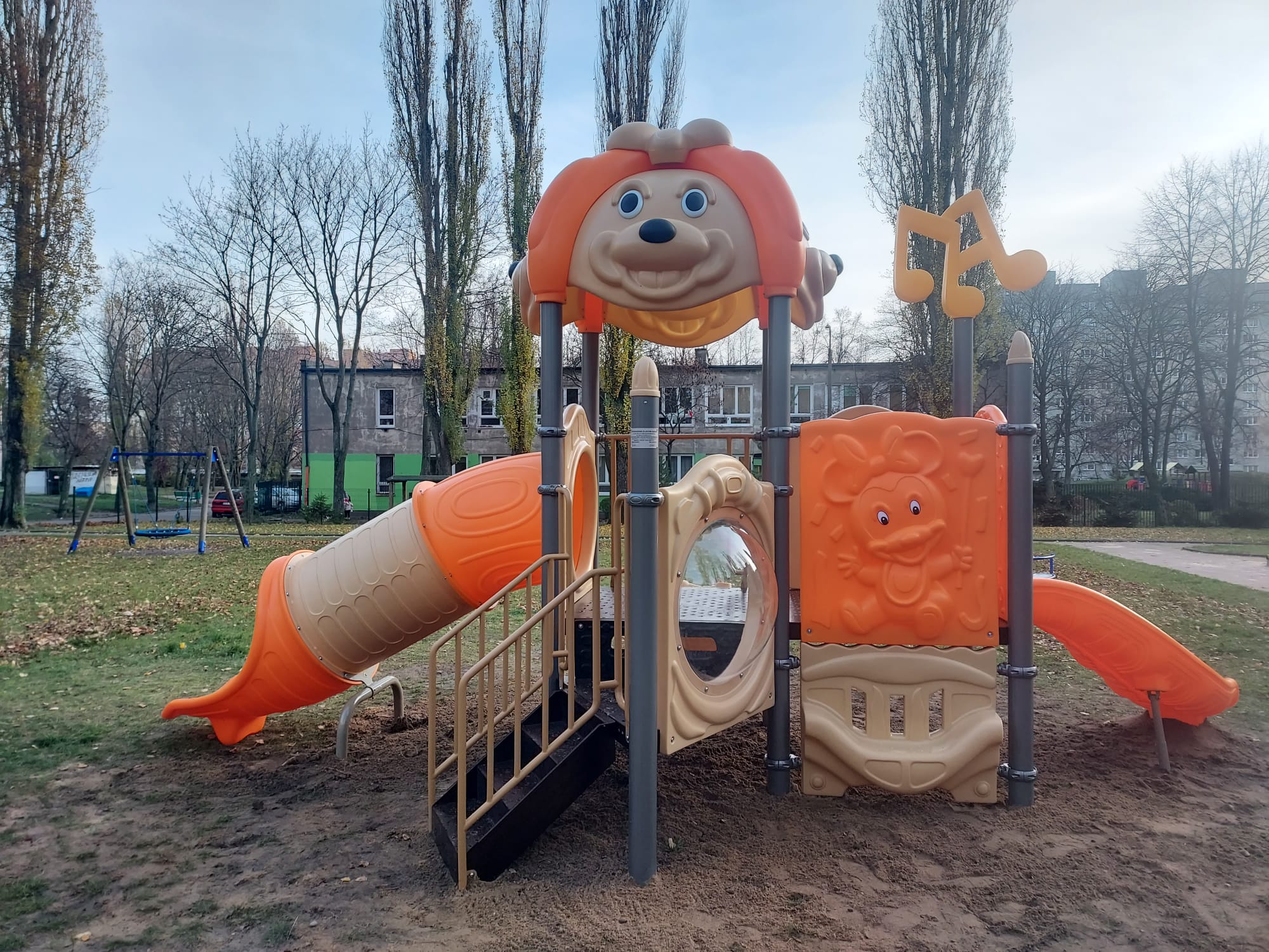 Plac zabaw Pieski Midi swoją kolorystyką i atrakcyjnością przyciągnie małego użytkownika, a wiosna będzie aktywnym czasem w ogródku przedszkolnym.