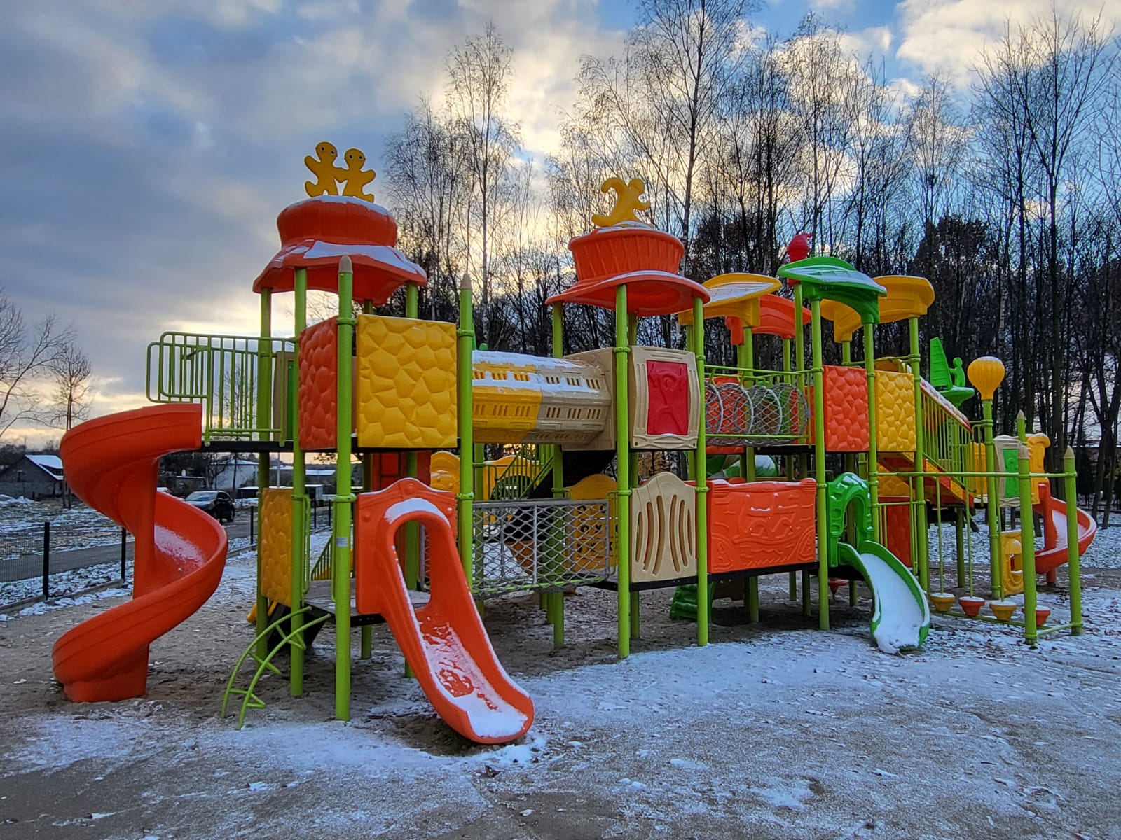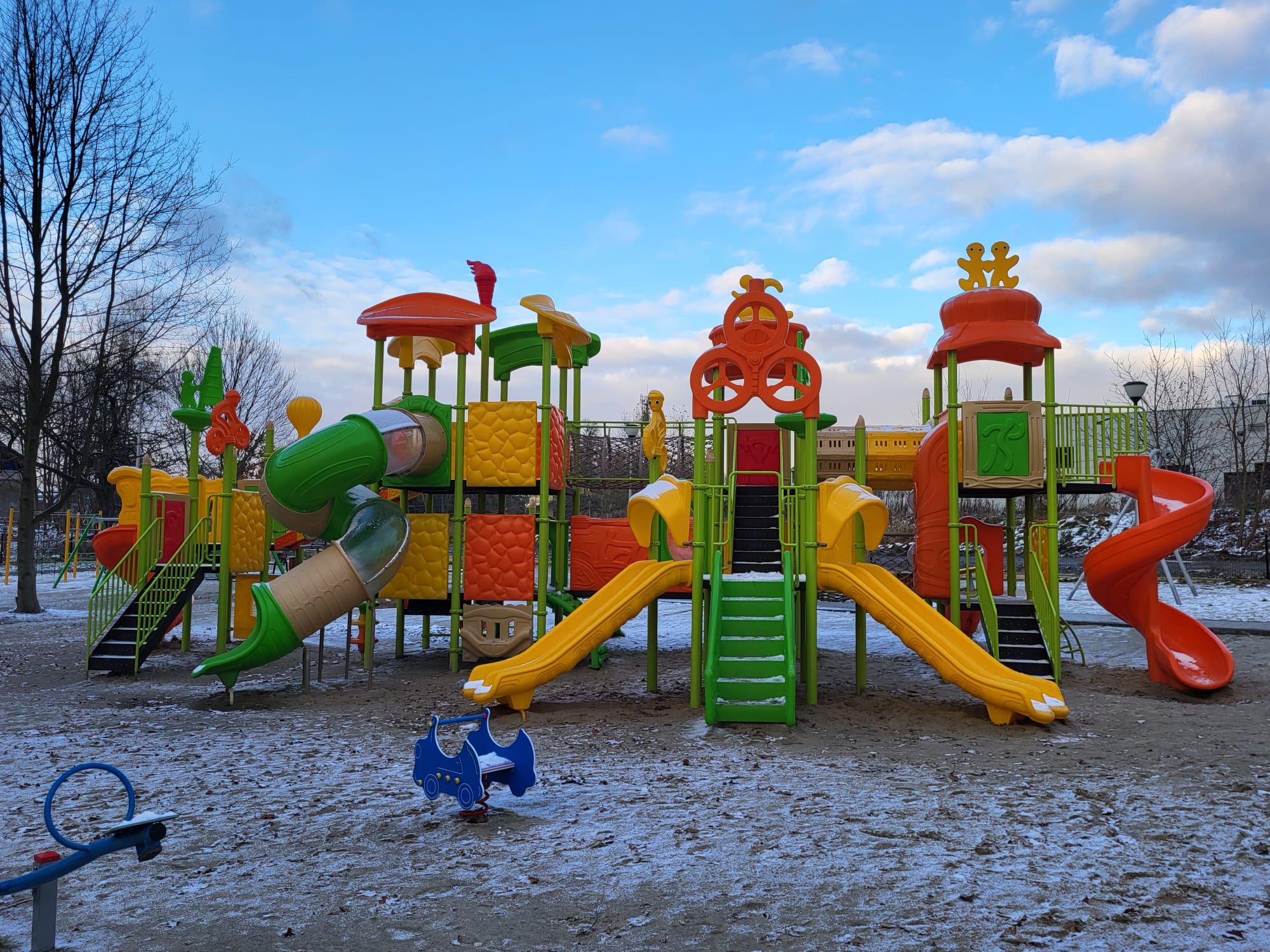 Plac zabaw wykonany z trwałego tworzywa LLDPE odpornego na działanie warunków atmosferycznych.